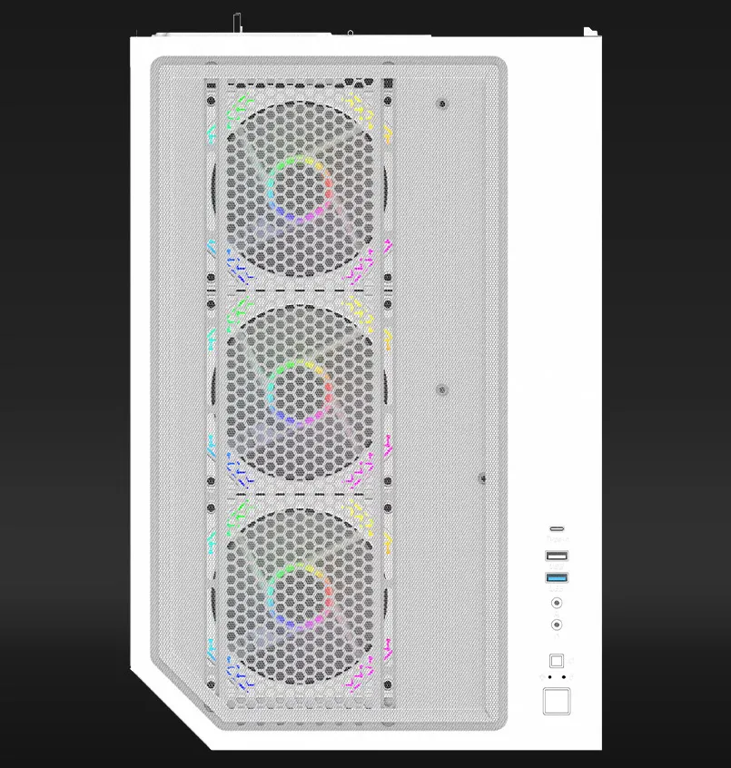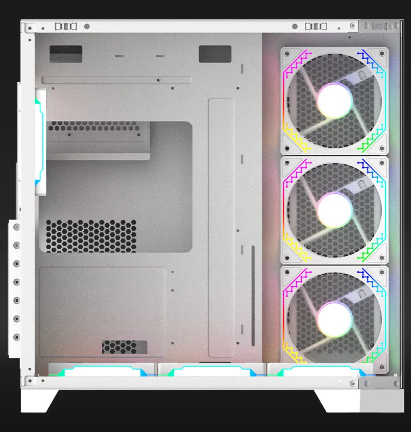 Type de boîtier : Midi Tour, Matériaux : Verre trempé (façade et panneau latéral gauche), acier SPCC 0,6 mm, ABS, Compatibilité carte mère : Mini-ITX, Micro-ATX, ATX, Compatibilité alimentation : ATX, longueur maximale de 175 mm (installation en bas), Compatibilité carte graphique : longueur maximale de 400 mm, Compatibilité refroidisseur CPU : hauteur maximale de 165 mm, Compatibilité refroidissement liquide : Oui, Panneau supérieur – 120/240/360*, Panneau latéral – 120/240/360*, Panneau arrière – 120 (*radiateurs fins de 35 mm d’épaisseur maximum), Baies de disques : 1x 3,5″, 2x 2,5″, Slots d’extension : 7, Connectique façade : 1x USB Type-C, 1x USB 3.0, 1x USB 2.0, Audio HD, Éclairage : ARGB, Ventilateurs pris en charge : 10 pièces – Arrière 1x 120 mm, Côté 3x 120 mm, Dessus 3x 120 mm, Dessous 3x 120 mm, Ventilateurs installés : 7 pièces – Arrière 1x 120 mm (ARGB), Côté 3x 120 mm (ARGB, pales inversées), Dessous 3x 120 mm (ARGB, pales inversées), Modèle de ventilateur : 6P-12DLO16B-ARGB, 6P-12DLRB16B-ARGB (ventilateurs à pales inversées), Caractéristiques spéciales : verre trempé, filtre anti-poussière magnétique amovible, compartiment alimentation, passages de câbles, Dimensions (L x l x H) : 426 x 435 x 280 mm, Poids : 5450 g, Couleur : Noir
