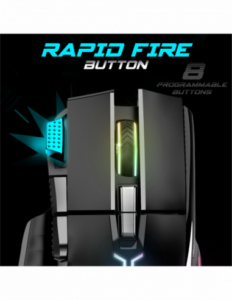 La souris est équipée de 8 boutons programmables dont un bouton spécial à configurer : RapidFire pour enchainer les kill ou en mode low DPI pour sniper sans trembler.