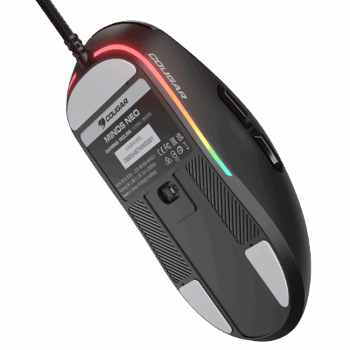 Souris Cougar Minos Neo – modèle filaire ultra légère (63 g), capteur optique PixArt PAW 3327 jusqu’à 6200 DPI, polling rate 1000 Hz, 6 boutons, 5 effets RGB, idéal pour le gaming précis et réactif.